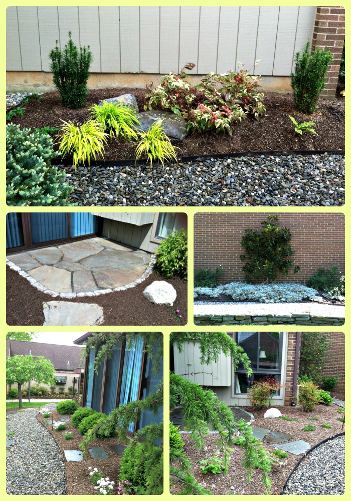That was the tall order that I as the landscape designer had to deal with. My client was an enthusiastic and knowledgeable gardener so she wouldn’t be satisfied with ordinary plantings.  She wanted unique, colorful, and scaled down – but beautiful.   Also, she wanted a pathway to be able to walk around the entire property which was sloping, so that she could enjoy the plantings.