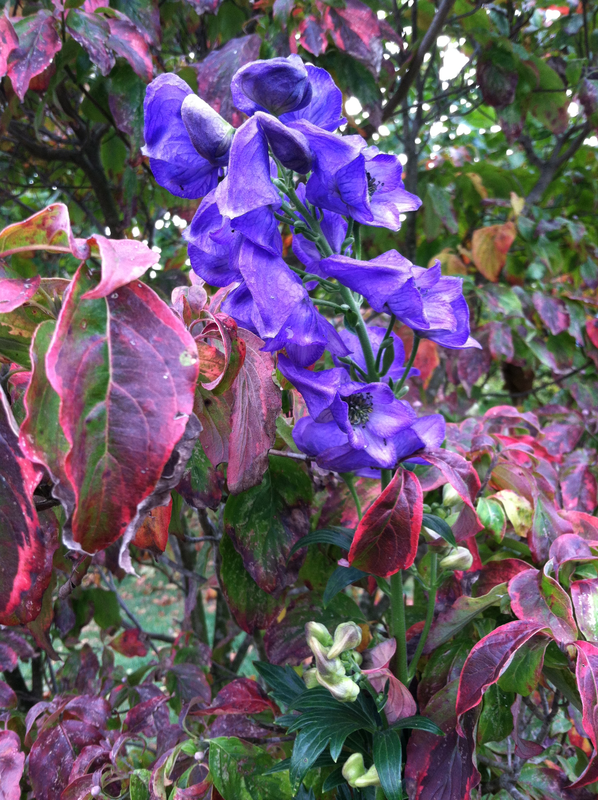This plant has a long storied history. Going back to medieval times, it was used in medicinal gardens and even further back, Romans used it to poison wolves, thus one of the common names- wolf’s bane. Native Americans used the poison to arm their arrows when hunting game.  On the flip side, the plant has also graced English cottage gardens for centuries, becoming a stalwart fall performer. Because it is extremely poisonous, deer give it a wide berth, and I have never found any evidence of deer browsing.